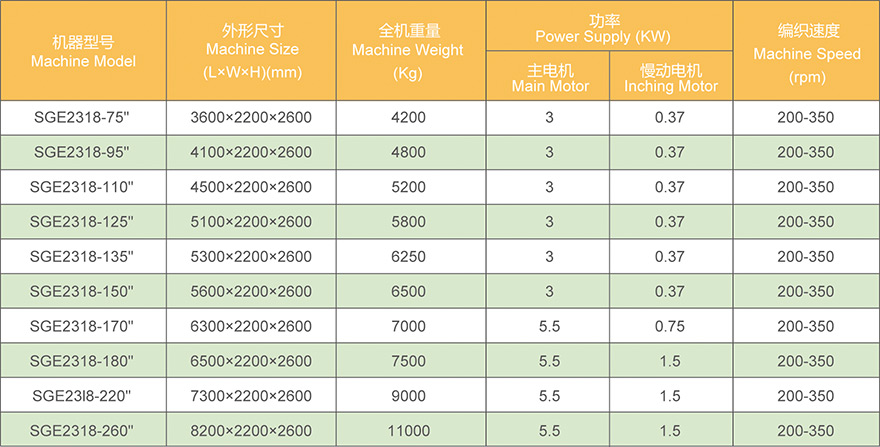產(chǎn)品簡介:用于編織各種無結(jié)漁網(wǎng)、安全防護網(wǎng)、體育用網(wǎng)、遮陽網(wǎng)、圍網(wǎng)等。采用油浸式偏心連桿機構(gòu)、漲力誘導剎車皮帶式消極送經(jīng)。主要技術(shù)參數(shù)1、針型:舌針或嵌舌針2、機號:E3、E6、E7、E8、E9、E12、E14、E16、E183、梳櫛數(shù):2-8把4、工作門幅:75" (19…