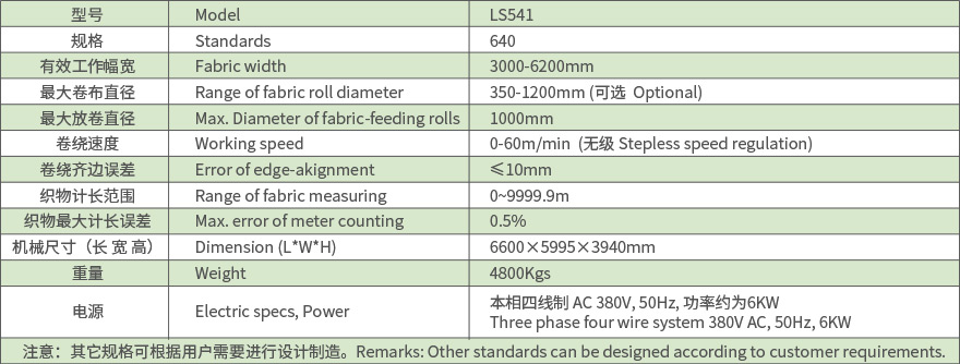 LS541KR型特寬幅對折驗卷機主要用于遮陽網廠,以及各塑料制品廠的后整理車間,可對各種網布織物成品,進行檢驗、修正、3米至6.2米幅寬的織物進行對折分卷;1米至3米的織物進行平幅檢驗分卷,保證實現理想的包裝運輸及出廠。